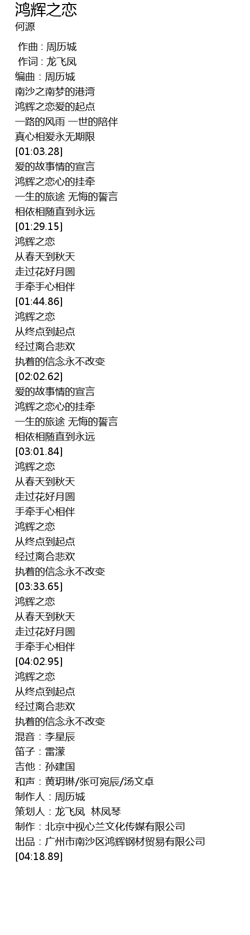 鸿辉之恋hong Hui Zhi Lian Lyrics Follow Lyrics